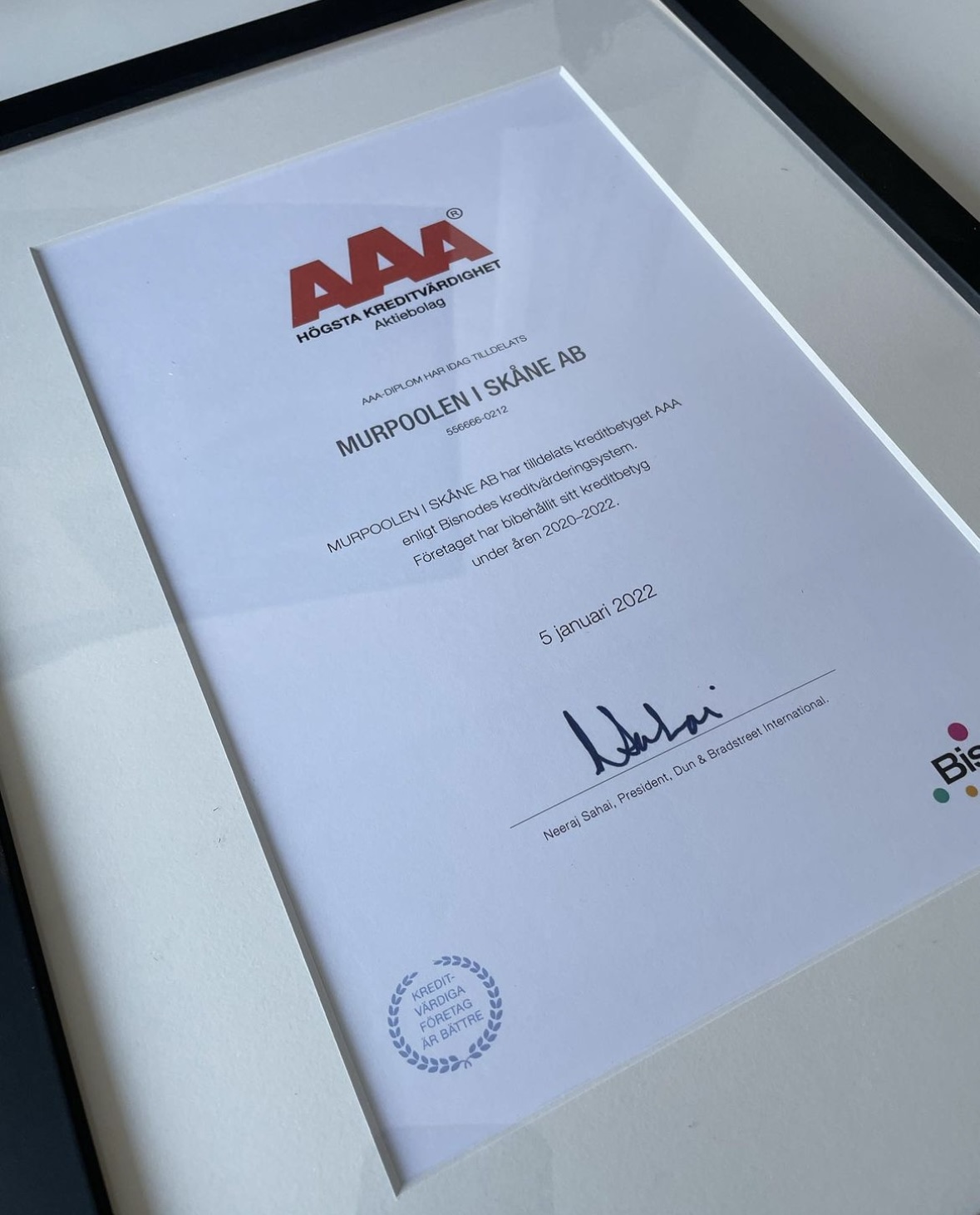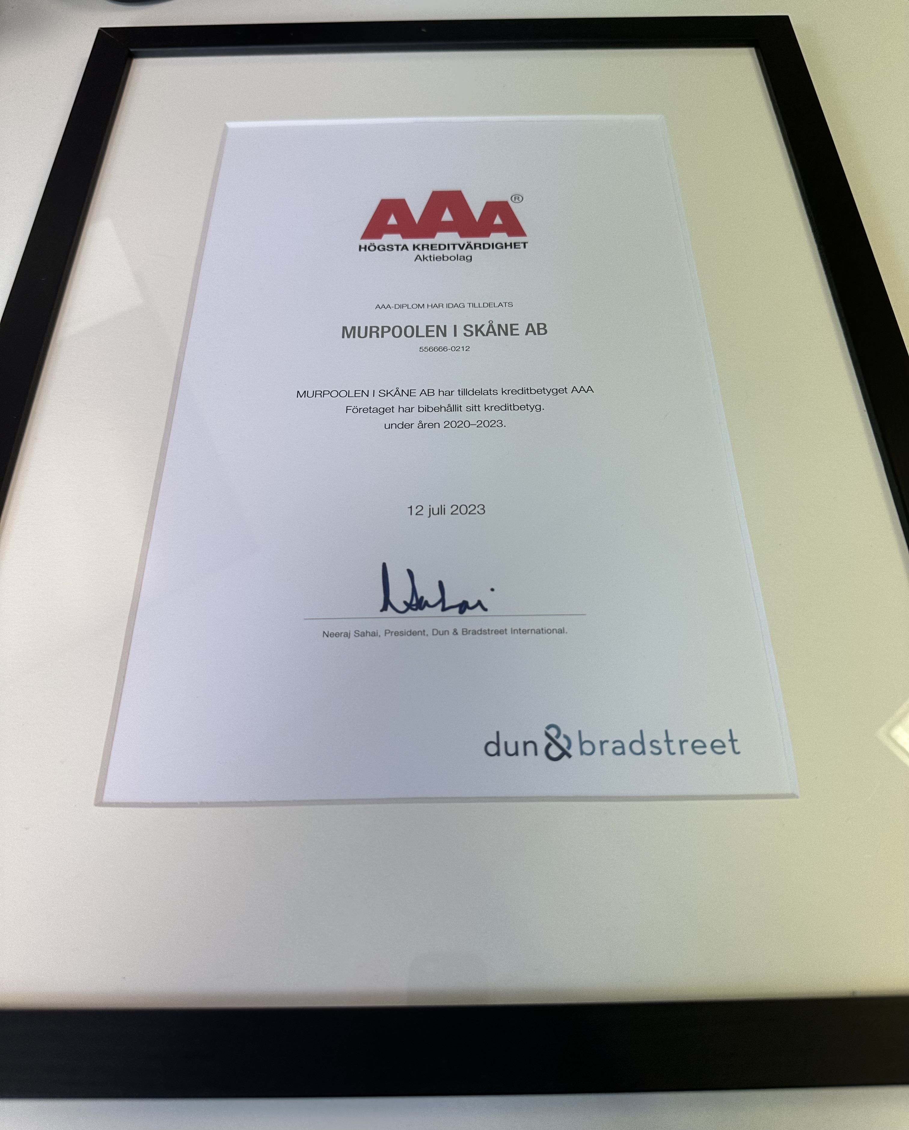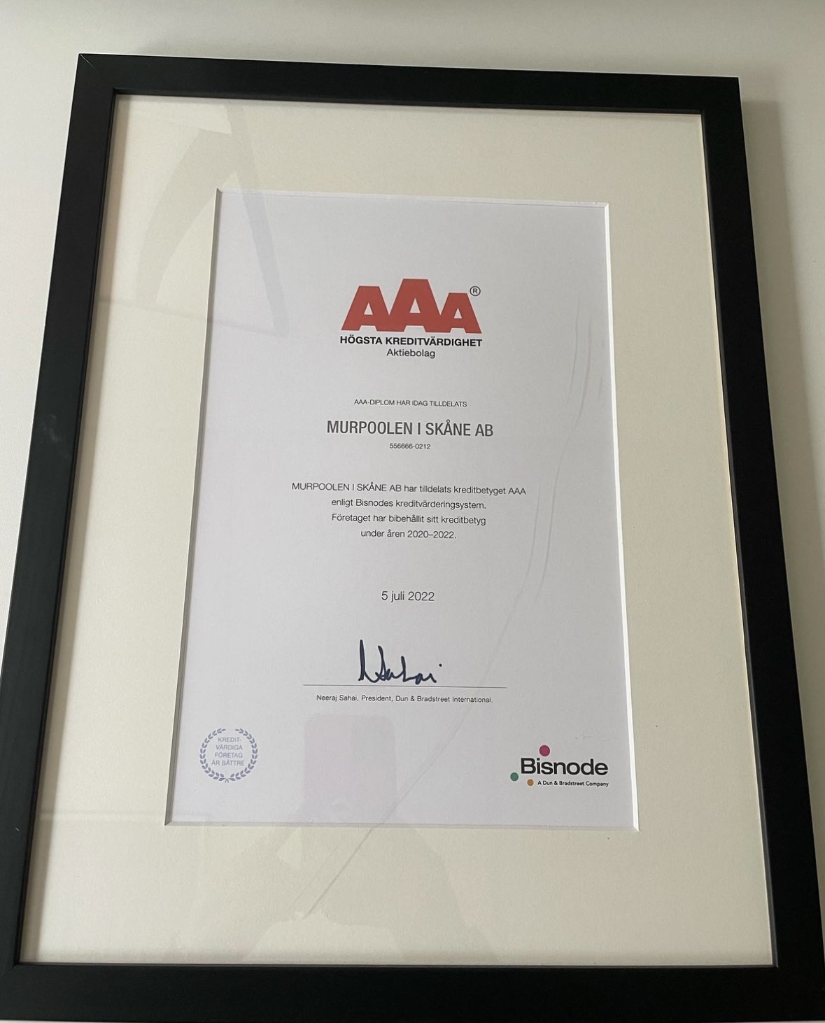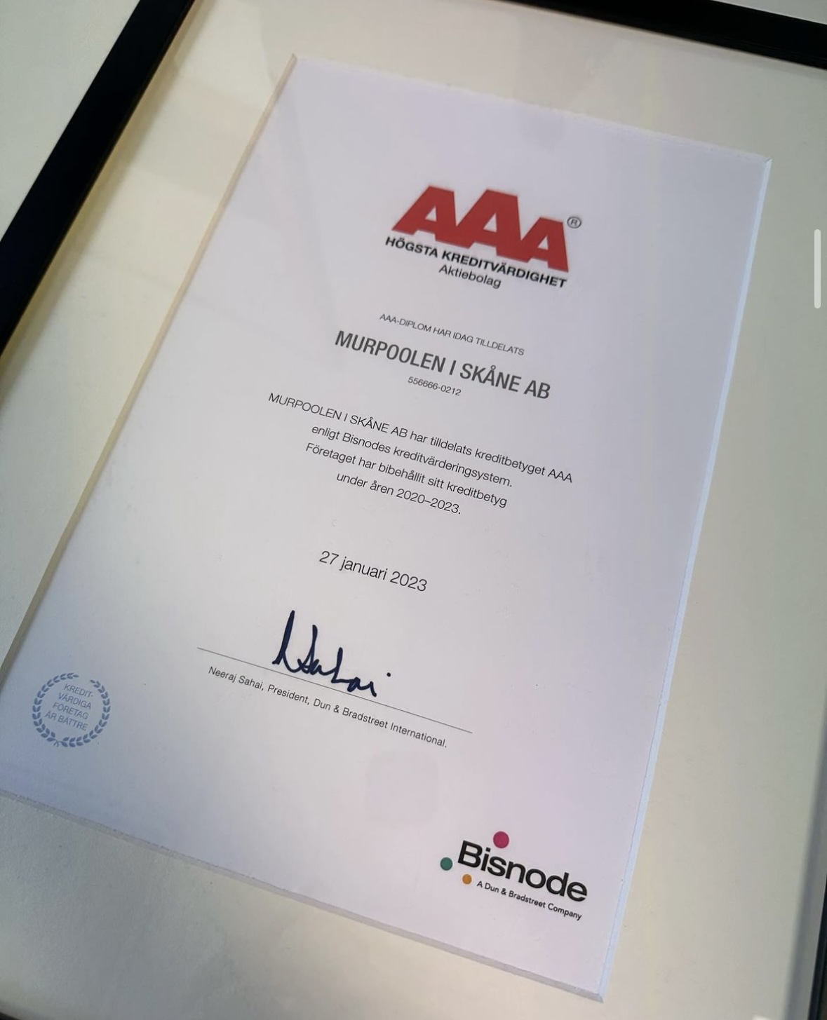 Vi uppnår högsta kreditvärdighet enligt Bisnode