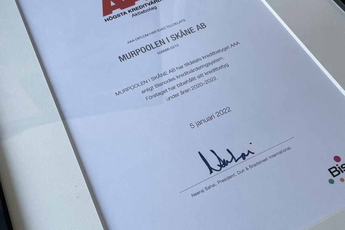 Vi fortsätter fylla på vår samling av AAA-diplom som visar att vi återigen uppnår högsta kreditvärdighet enligt Bisnode!