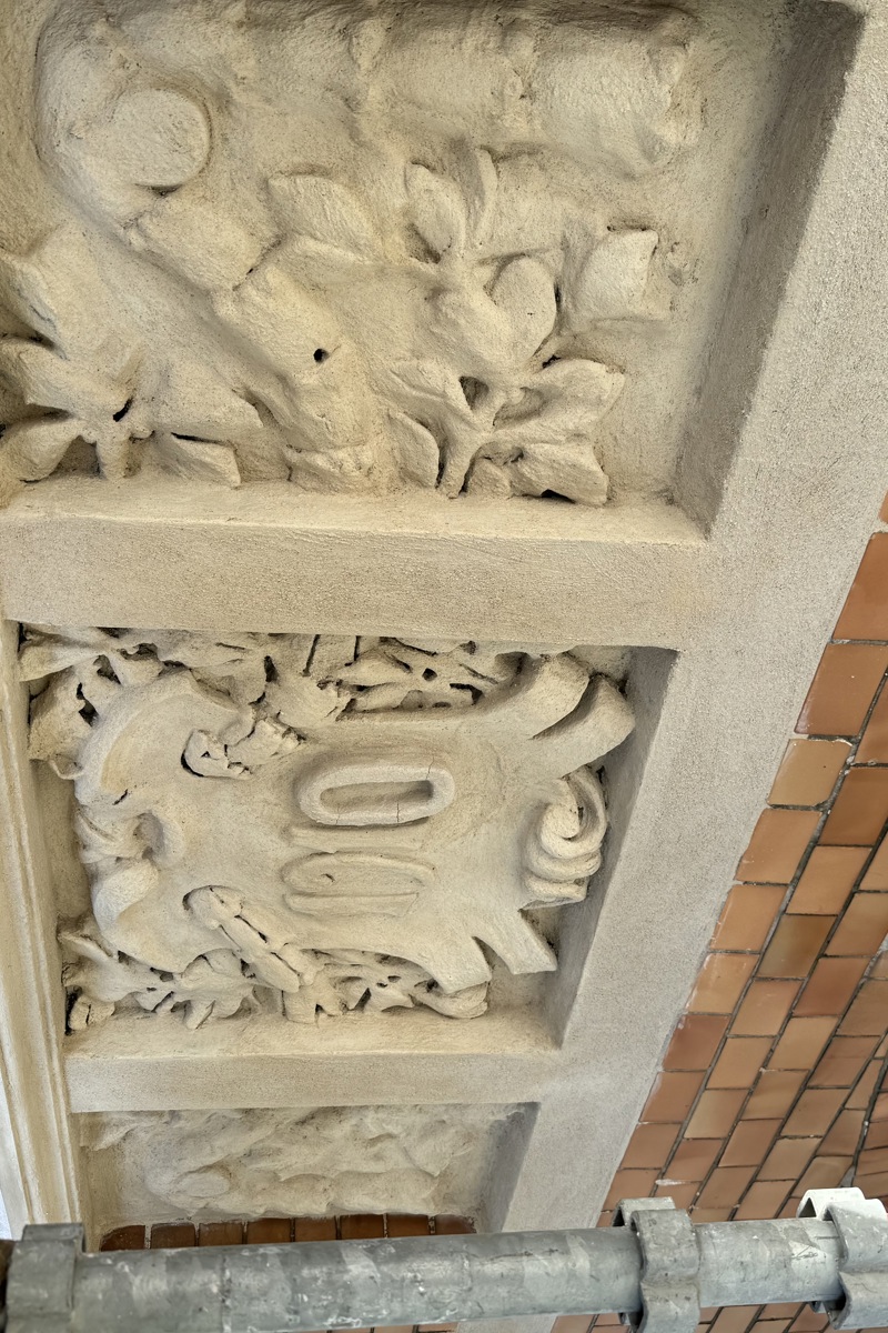 Pågående putsrenovering på Östergatan i Trelleborg.
