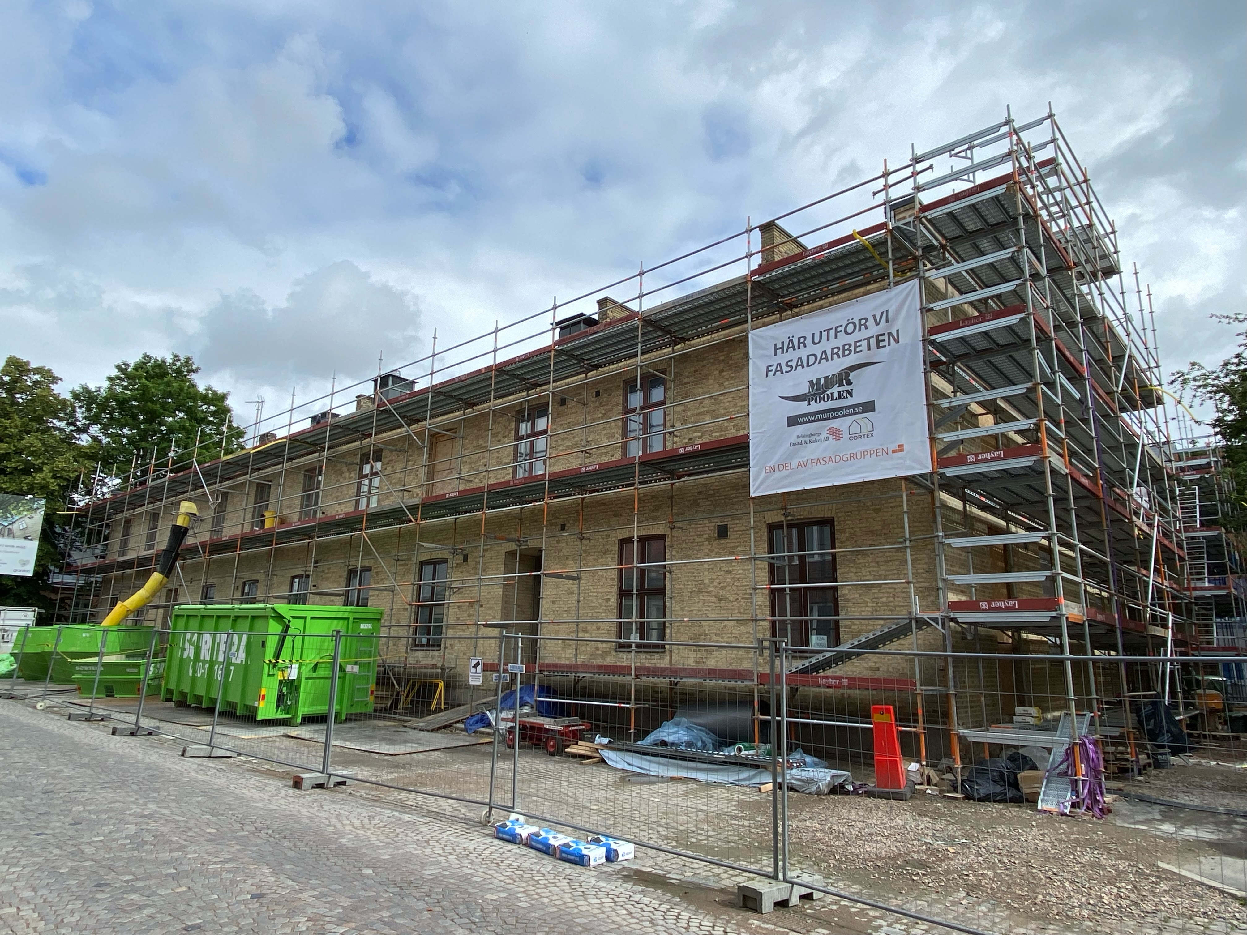 På vårt projekt Maria Magle i Lund utför vi en stor fasadrenovering åt Granitor. Till hjälp har vi 3 stycken av våra systerbolag Malmö Mur & Puts AB, Cortex Facaderens & Membran och Helsingsborgs Fasad & Kakel. Vilket teamwork!!