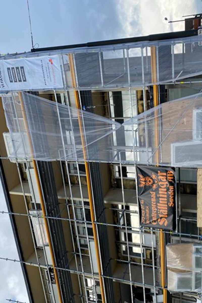 Ett av våra pågående projekt Vårdkasen 2 på Vattenverksvägen i Malmö. Här utför vi en balkongrenovering i samarbete med Interoc Dörr & Fönster AB.