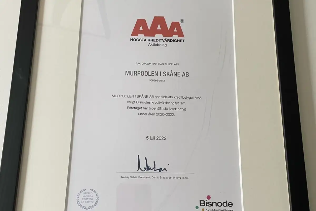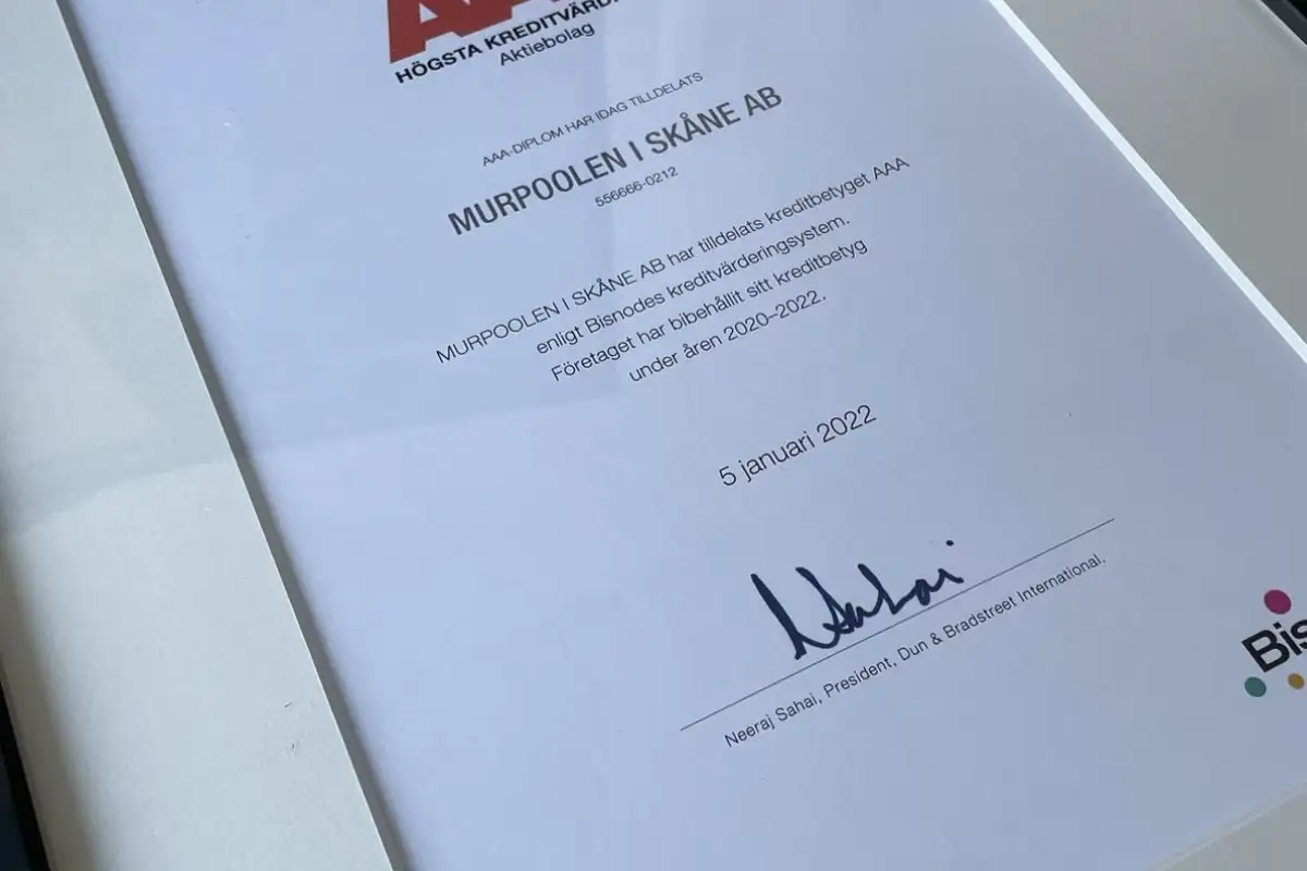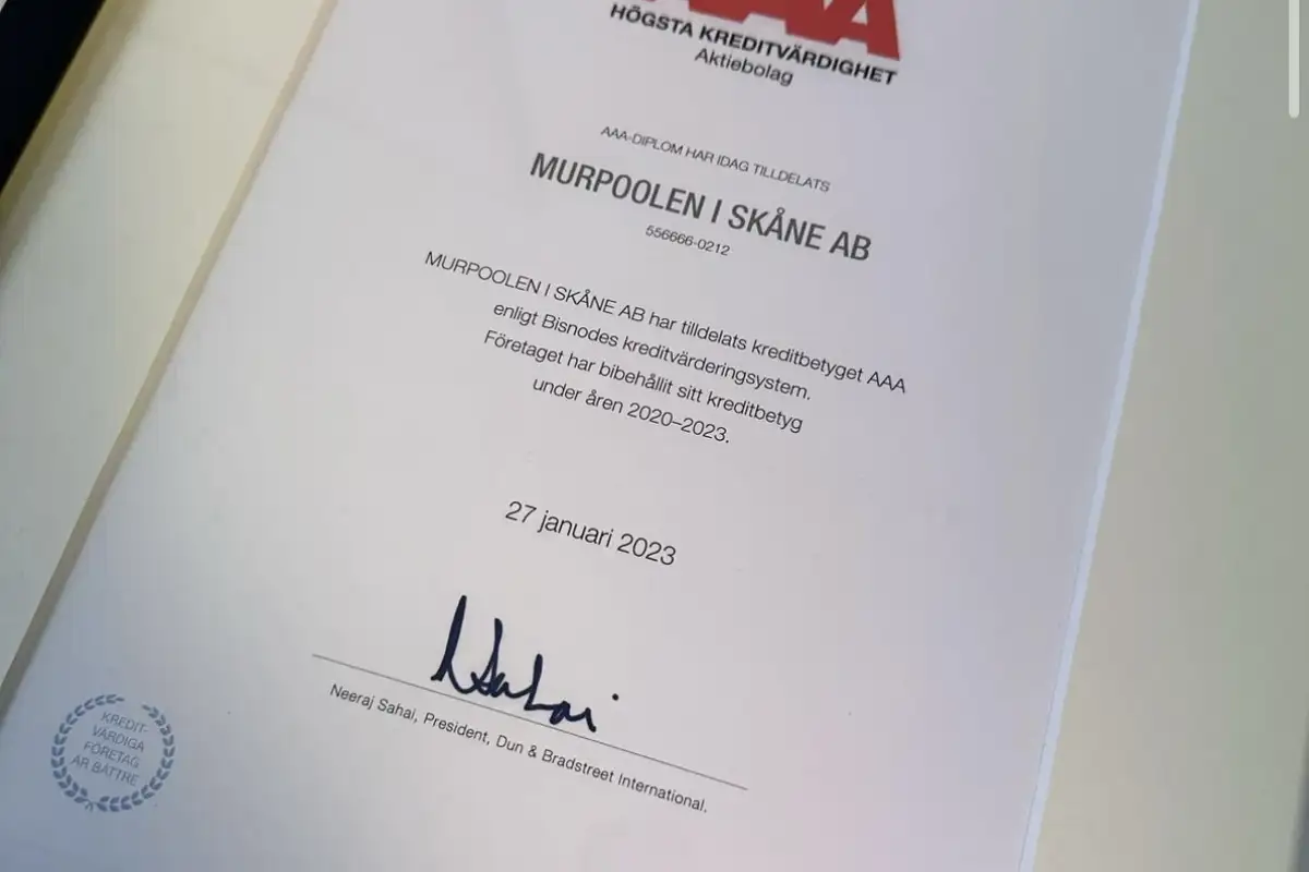Vi uppnår högsta kreditvärdighet enligt Bisnode