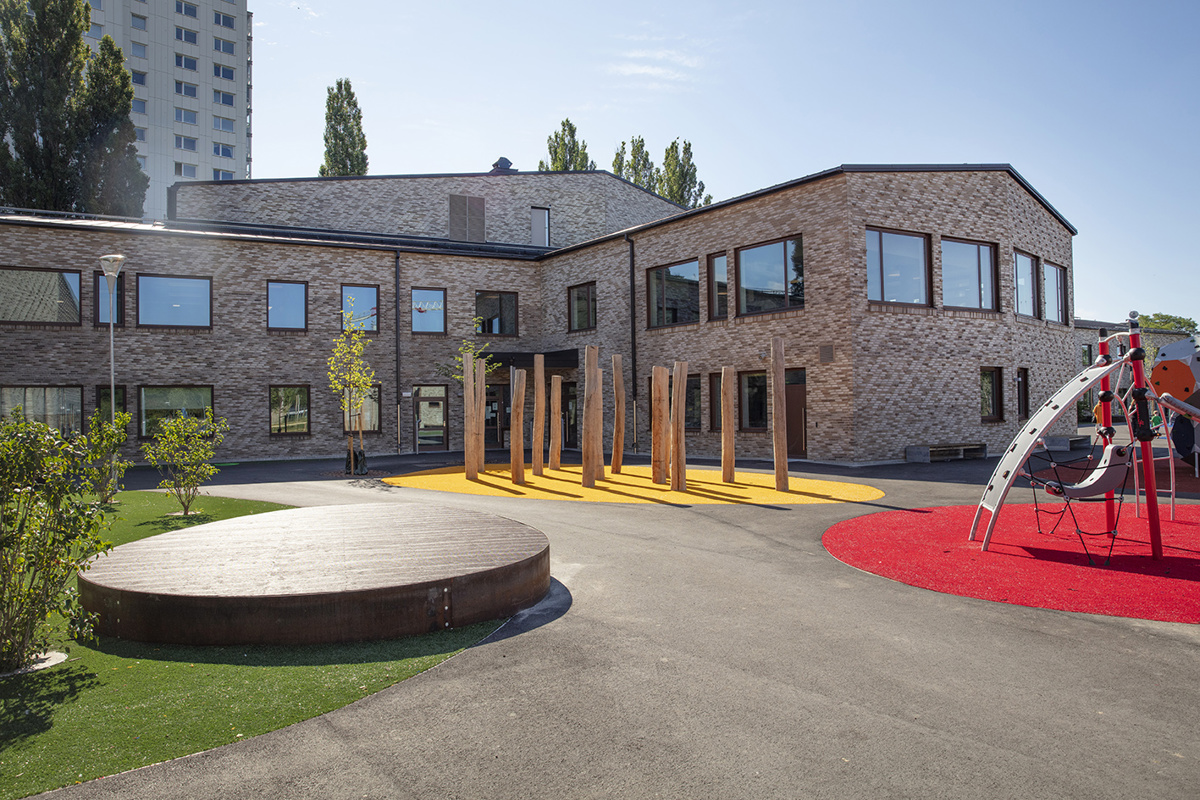 Uppdragsbeskrivning: Nybyggnation av skola och idrottshall. Invändig och utvändig murning och putsning.